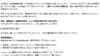 迷惑メール 件名: 【最終案内】SBIよりご本人様確認のお願い