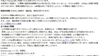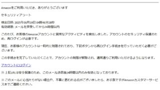 迷惑メール 件名: Amazonアカウントの異常自動検出のお知らせ