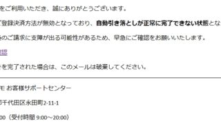 迷惑メール 件名: お支払い方法の更新をお願いしますMV=3890199670176 Created at: 2025/6/22 7:42:51 JST ( Delivered after 22 sec )From: Docomo <NTT-docomo.aaj85980@rjyhs.shop>#DelayFrom*To*P... 2025.06.22 迷惑メール