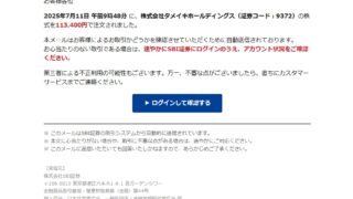 迷惑メール 件名: 【SBI証券】本人以外の注文の可能性があります