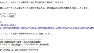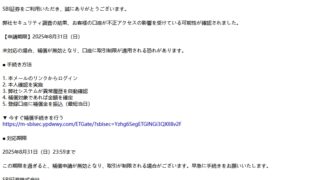 件名: 【SBI証券】お客様資産への不正介入の兆候のためアカウントの確認をお願いします