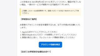 迷惑メール 件名: Aррӏе IDに関する Created at: 2025/9/1 0:34:20 JST ( Delivered after 6 sec )From: Aррӏе <fgrtq@vmta06.jinyouzhika.com>#DelayFrom*To*Protoc... 2025.09.01 迷惑メール