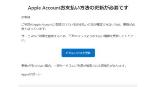 迷惑メール 件名: Apple ID:お支払い方法の有効期限切れが確認されました