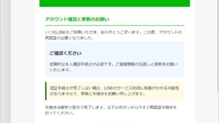 件名: LINEアカウント更新のため、認証を再実行してくださいWR=38274569191028