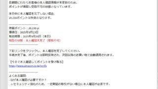 迷惑メール 件名: 【重要】本日中に本人確認が必要|20,230ポイントが失効しますNo.8091769