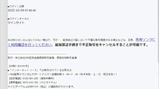 Created at: 2025/10/9 15:07:14 JST ( Delivered after )From: 野村證券セキュリティセンター <alert_corpo@dqjdq.com>#DelayFrom*To*Protocol...