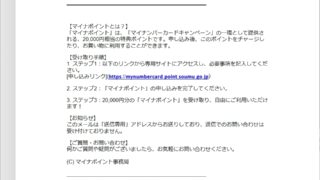 迷惑メール 件名: 期限内に申請してマイナポイント20,000円分を手に入れよう!ZO-79812588787