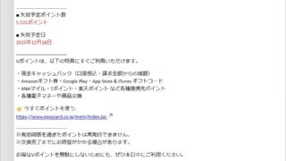 迷惑メール 件名: 【重要】ポイント失効のお知らせ|お早めのご利用をおすすめします(No.-YH-23267698789)