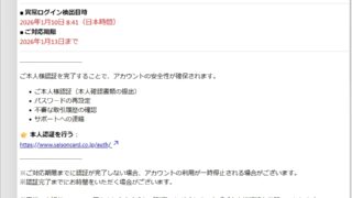 迷惑メール 件名: Saison Cardポイント有効期限のお知らせ(No.-FE-11639114706)