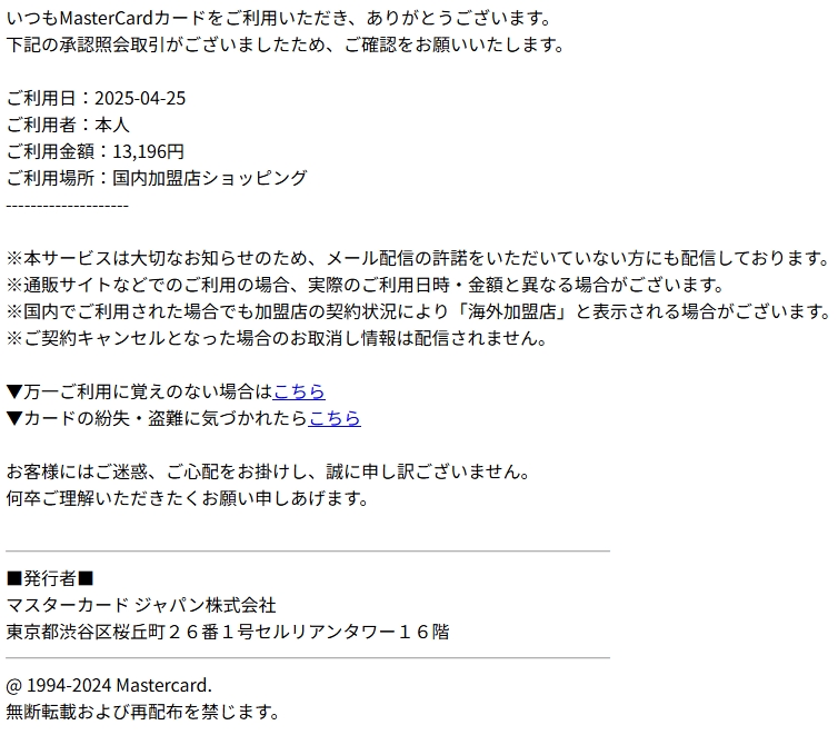 差出人: マスターカード <vqy8ncq6r1qy0xm@eiln.com>