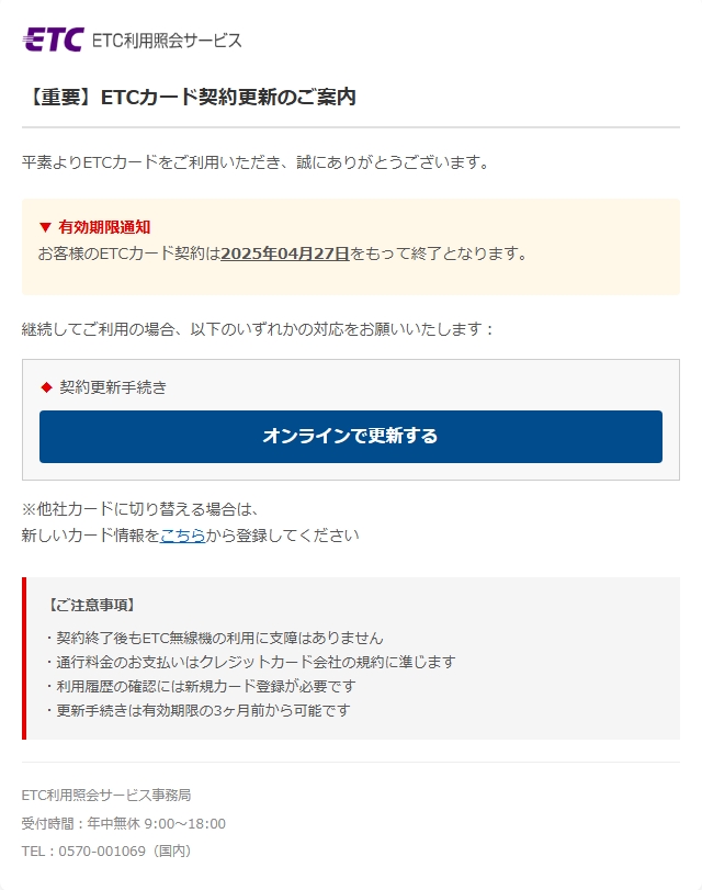 差出人: ETC利用照会サービス <ETC-ccajIsE@kabuto11.co.jp>