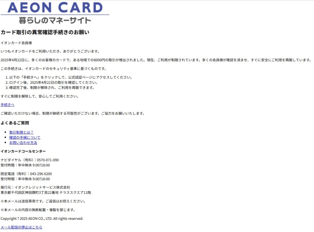 差出人: AEONクレジットサービス <AEON.8piwcnjr9@iris.ocn.ne.jp>