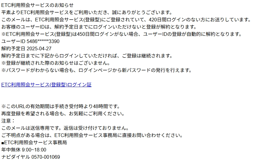 差出人: ETC利用照会サービス <clqgrm8arq703@lzmb.net>