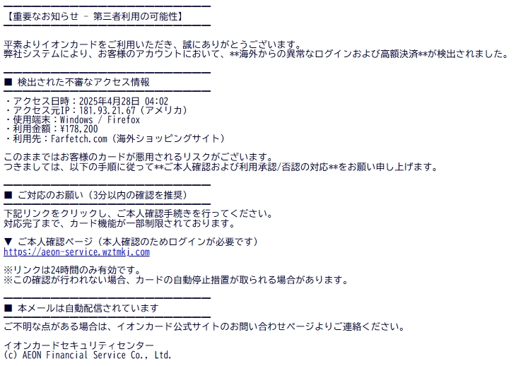/// フィッシング詐欺メールです! ///