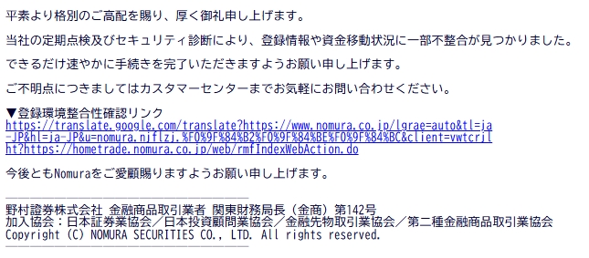 差出人: Nomura お客様サポート <mail@jduegy.com>