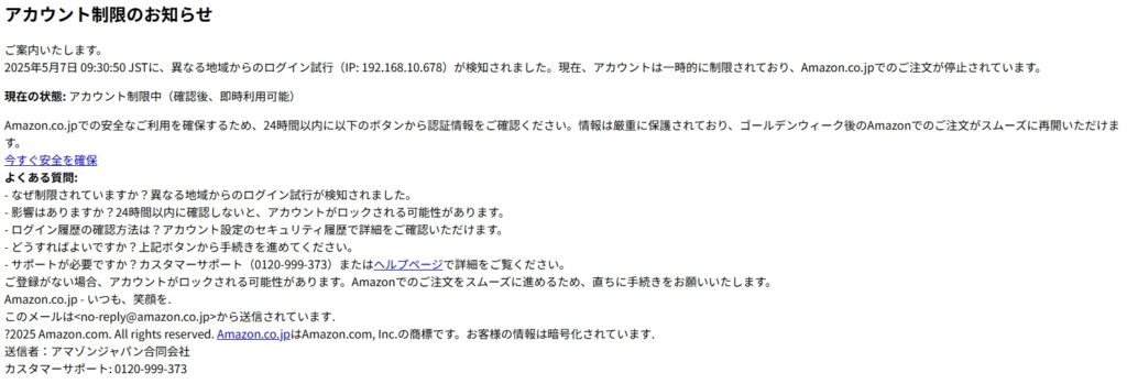 /// フィッシング詐欺メールです! ///