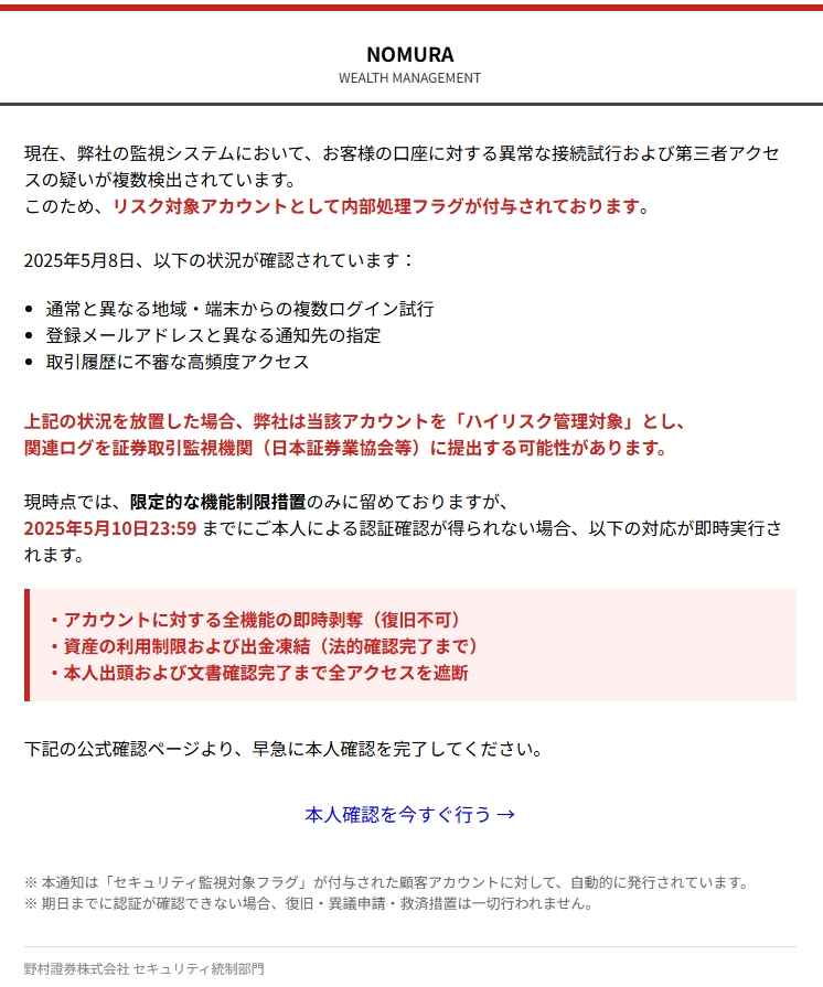 差出人: 野村證券 <info@mail.rakuten-card.co.jp>
