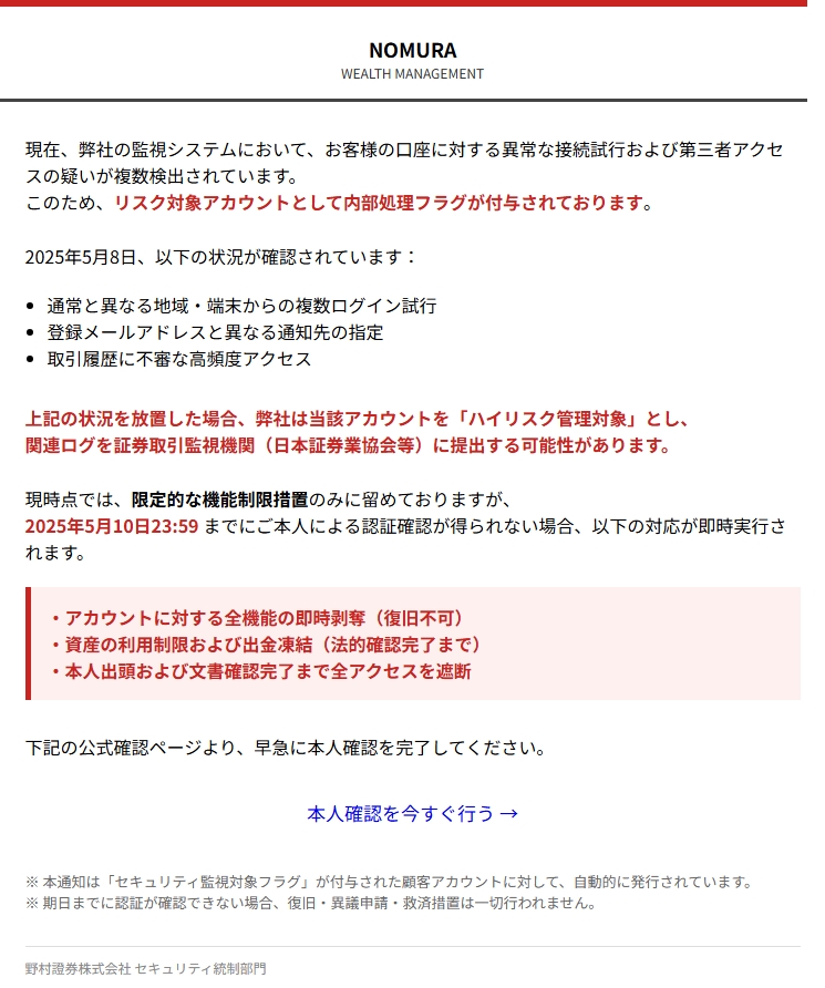 差出人: 野村證券 <info@mail.rakuten-card.co.jp>