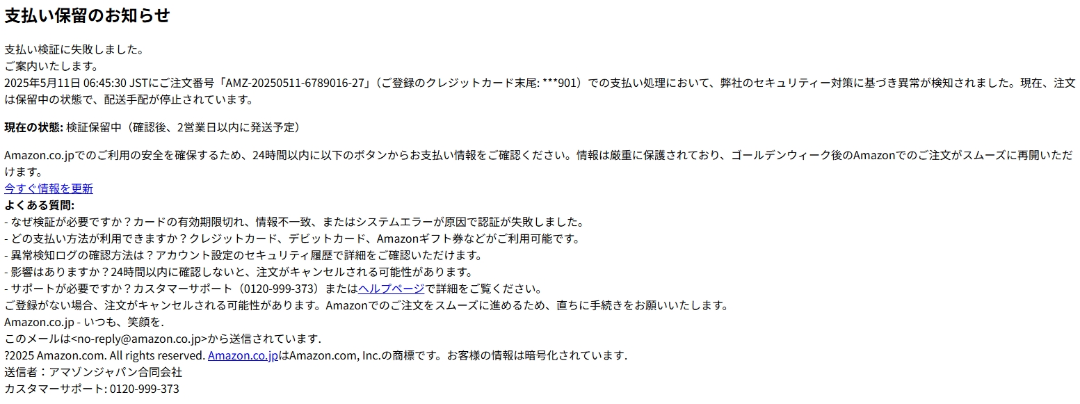 差出人: Amazon.co.jp <Amazon.a.t.nu4.10@pxqtn.shop>