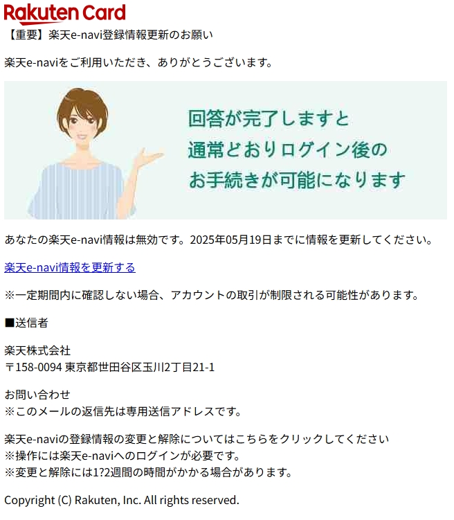 差出人: 楽天カード株式会社 <rakuten-e-navi_net-oASQ@synchro-food.co.jp>