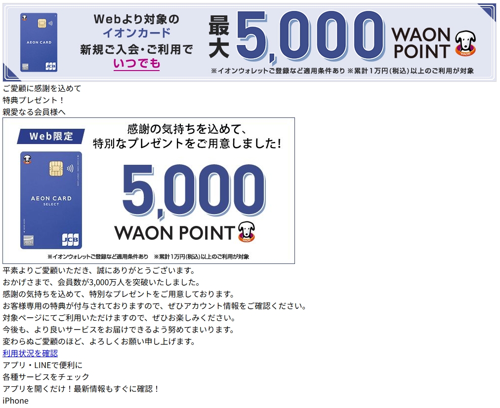 差出人: イオンカード <Betsy@testvpnc.sma.jreast.co.jp>