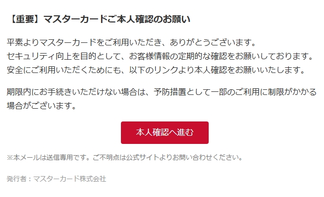 差出人: Mastercardサポート <asakura-kyoto@lamcc.com>