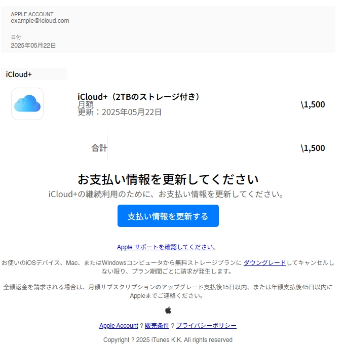 差出人: iCloud <Jkx1.applestore.updateservice.mailJkx1@japanet.co.jp>