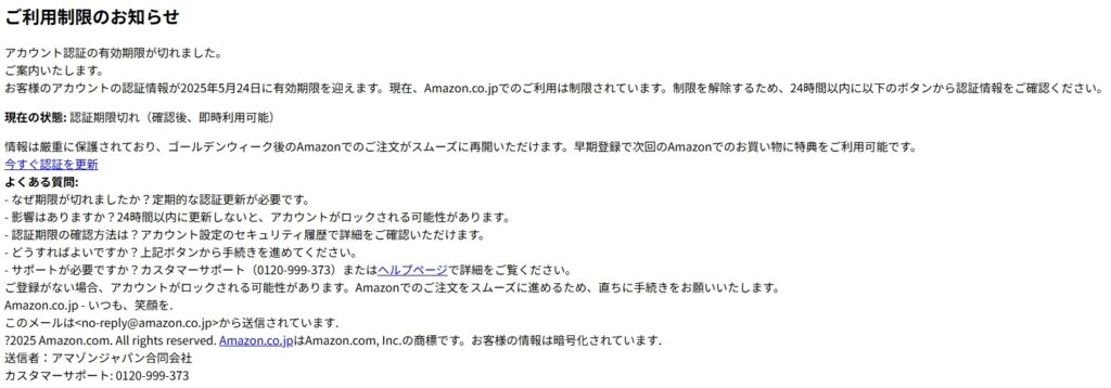 差出人: Amazon.co.jp <Amazon.4491gorumi@nosh.jp>