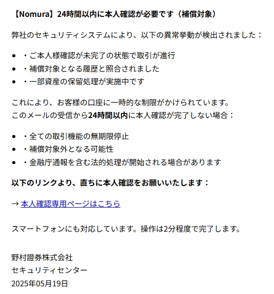 差出人: Nomuraサポートチーム <nomura__support@315aab.cc>