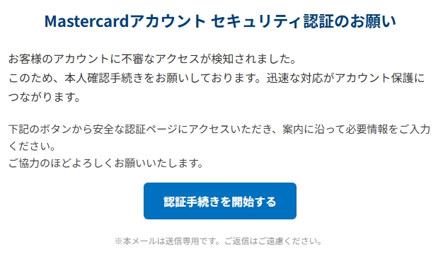 差出人: Mastercardサービス <takanori.morioka.dreamer@gigac.com>