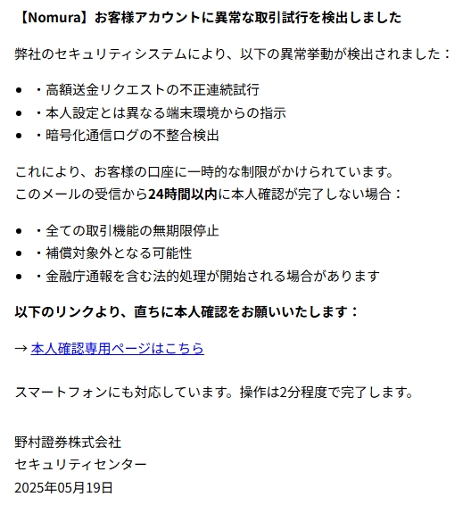 差出人: Nomuraセキュリティ <nomura__auth@mbuitre.com>