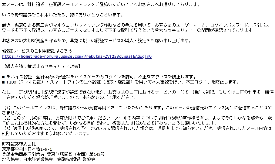 差出人: 野村證券 <information@xm2yr.com>