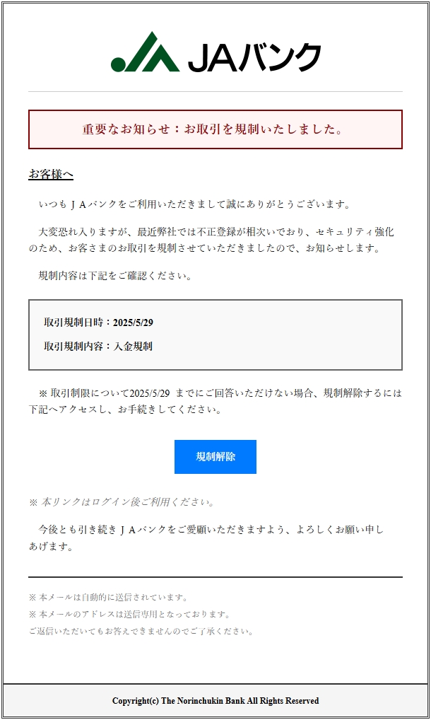 差出人: 𝐉𝐀ネットバンク <jabank-mail115@jabank-mail115.htfurnace.com>