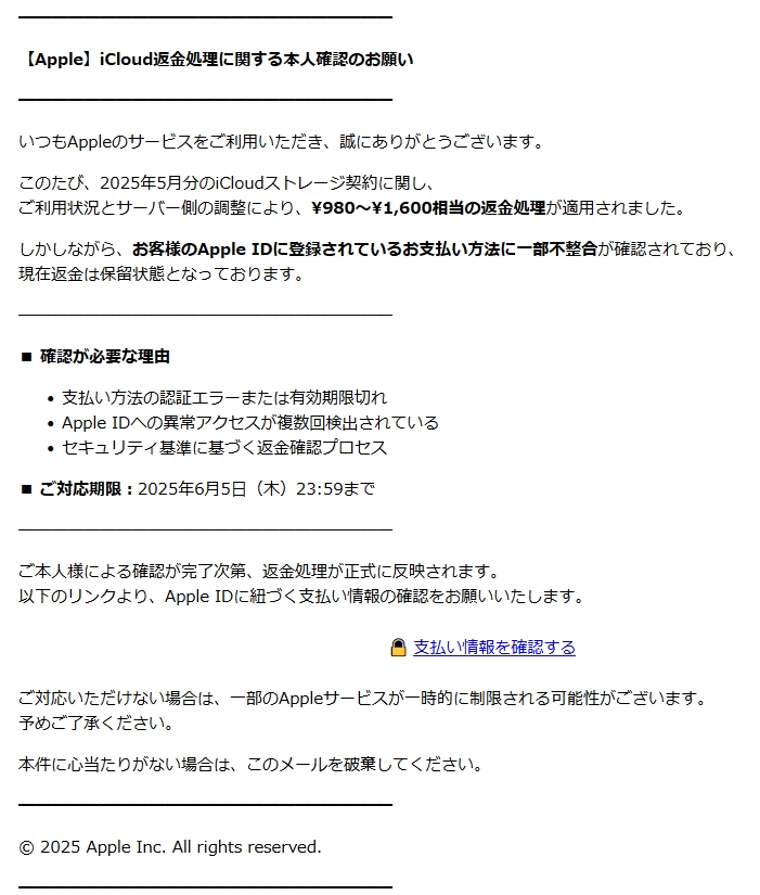 From: Apple返金案内係 <payment-confirm@ameba.jp>