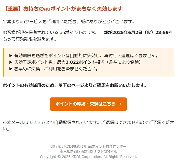 From: auポイント消滅案内窓口 <update@repica.jp>