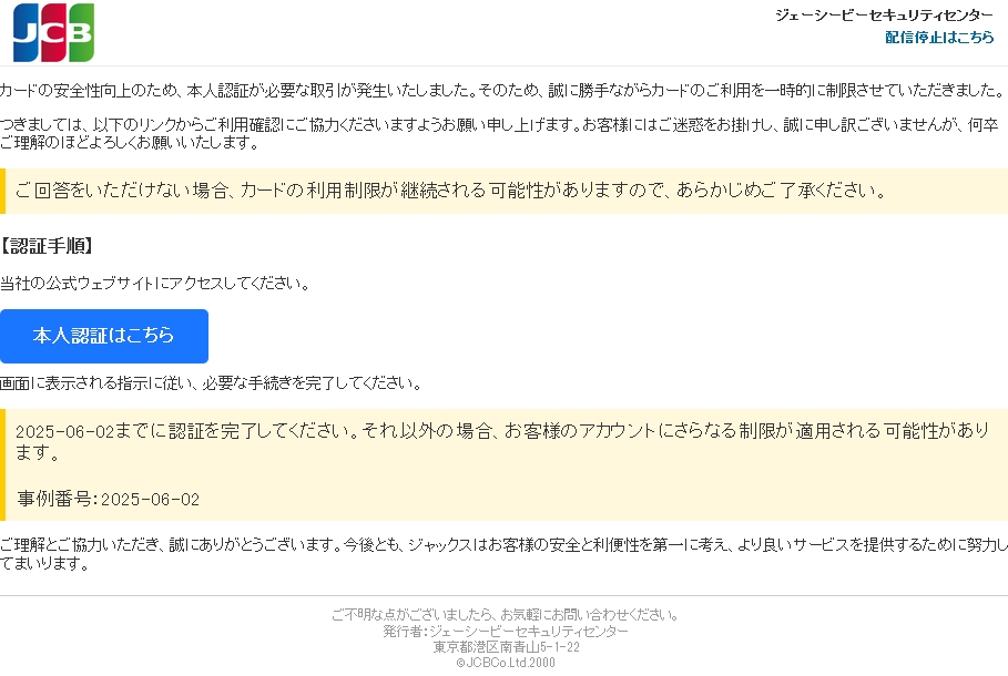 迷惑メールCreated at: 2025/6/1 8:11:18 JST ( Delivered after 6 hours )