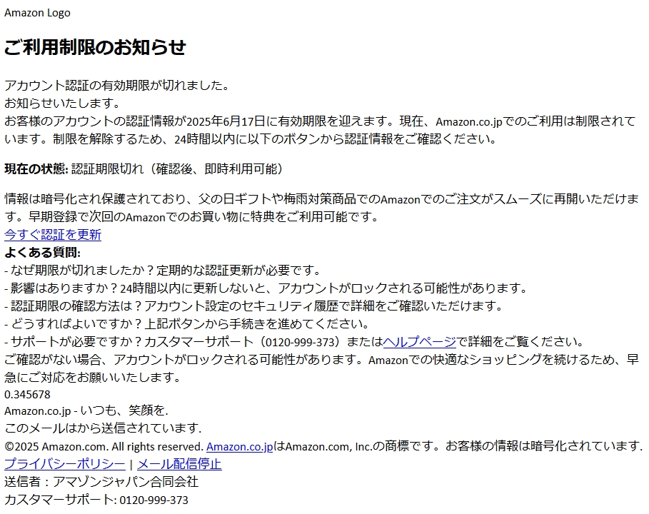 /// フィッシング詐欺メールです! ///