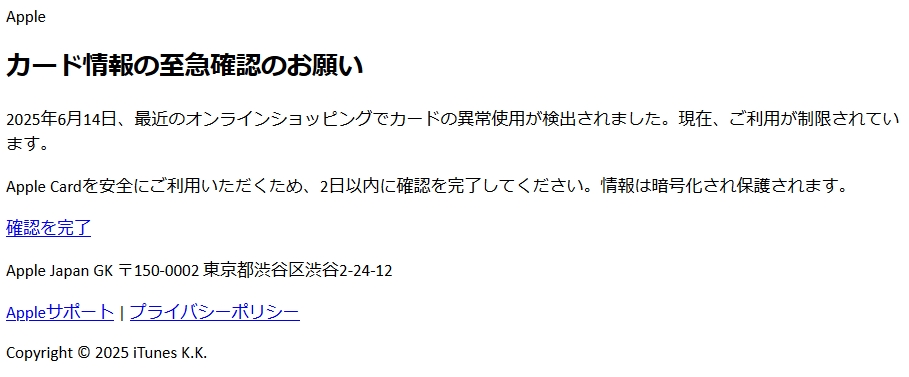 From: Apple サポート <Apple.melancholy@cbsl.com>
