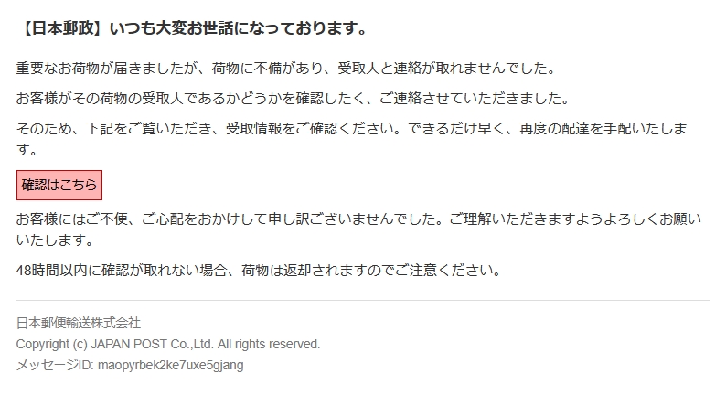 From: 日本郵便 <order.yznqmt@service.tucbx.cn> Using Foxmail 6, 13, 102, 15 [cn]