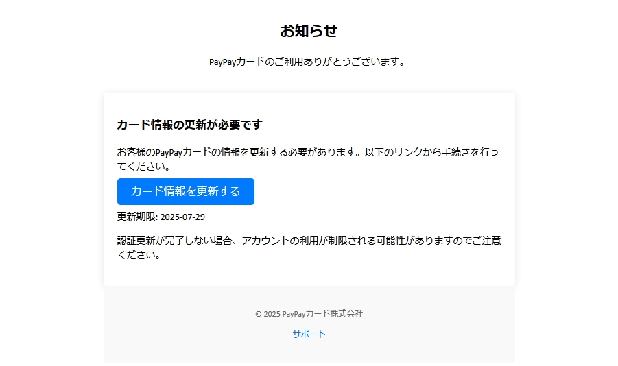 From: PayPayカード <info01-paypayjp-xyJr@mycolor.jp>