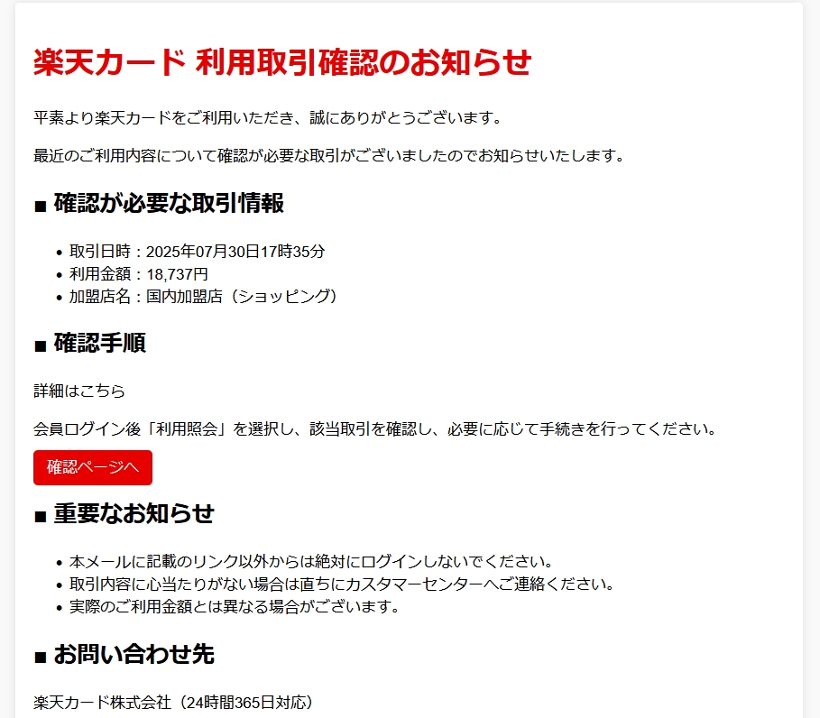 From: 楽天カード株式会社 <information@emailbm2Y.net>