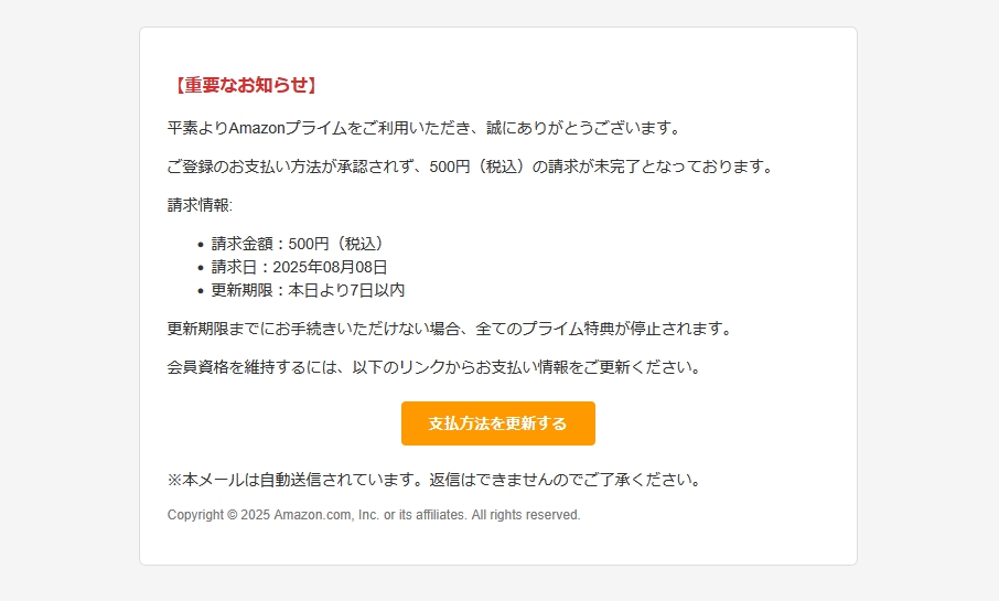 /// フィッシング詐欺メールです! ///