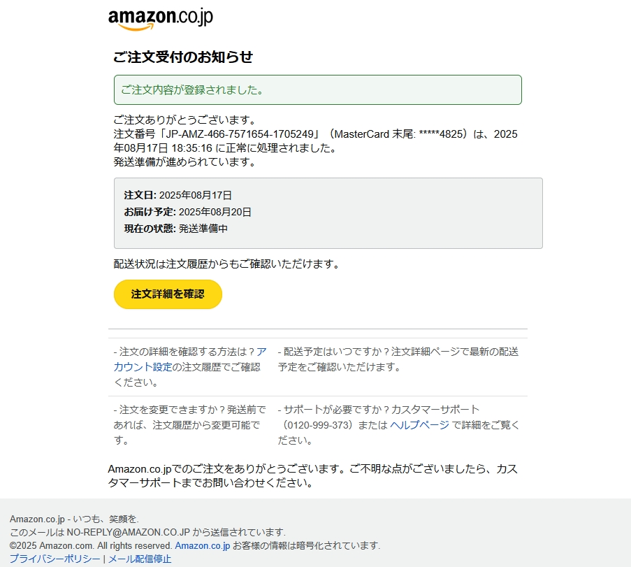 Created at: 2025/8/17 18:35:16 JST ( Delivered after 8 mins )