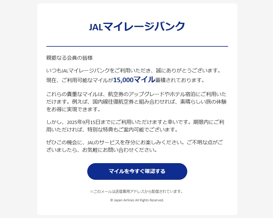 From: JALマイレージバンク事務局 <Hilll4014@GuDO.com> Using Mozilla Thunderbird 16.4