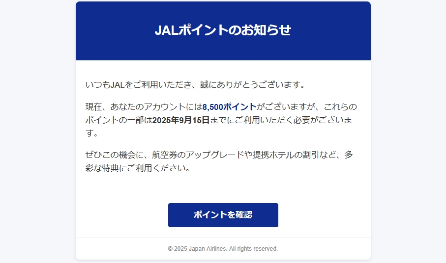 From: JALマイレージバンク事務局 <Johnson4285@EdfS.com> Using Apple Mail 11.1