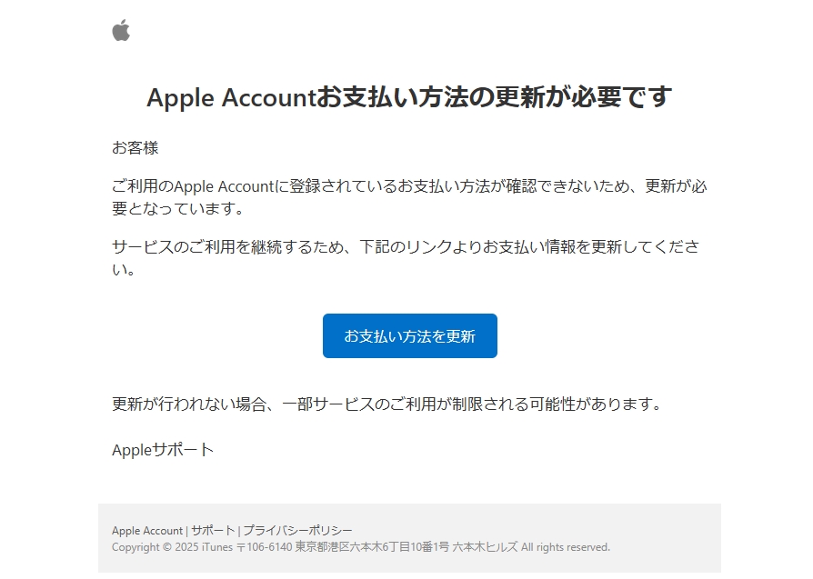 From: Appleサポート <applesupport-sbqiapplesupport@propertyagent.co.jp>