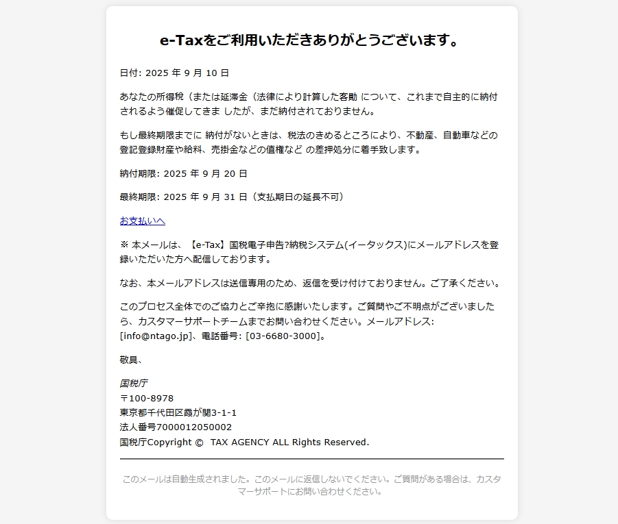 From: e-Tax(国税電子申告・納税システム) <mail.djzsrjae@service.ljzjw.cn> Using Foxmail 6, 13, 102, 15 [cn]