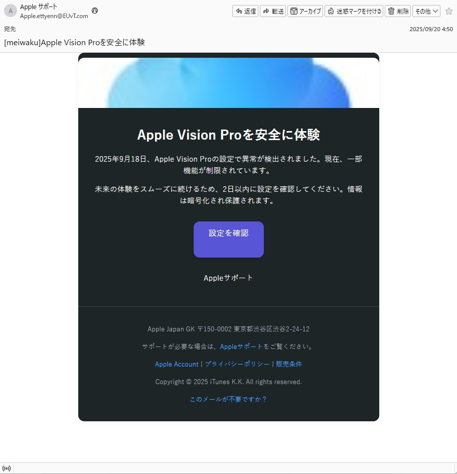 From: Apple サポート <Apple.ettyenn@EUvT.com>