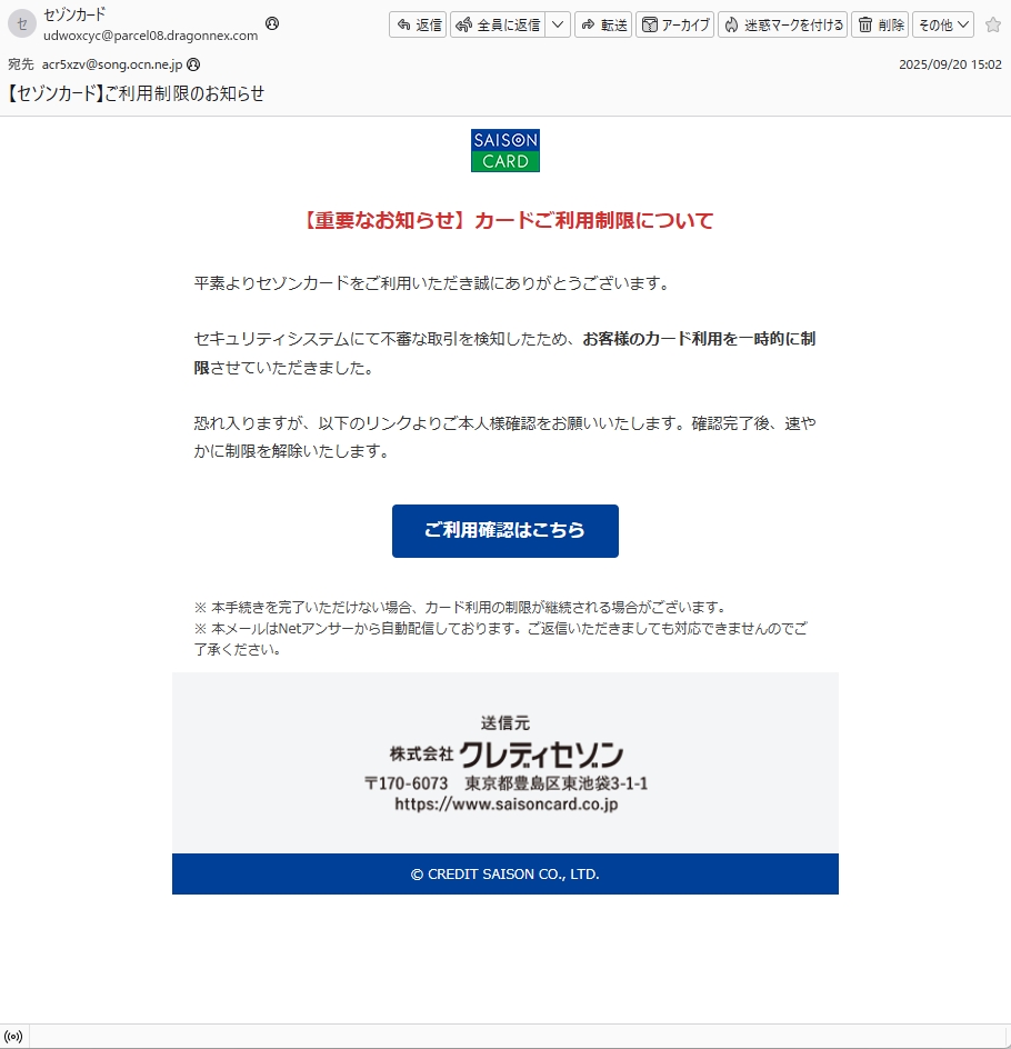 From: セゾンカード <udwoxcyc@parcel08.dragonnex.com>