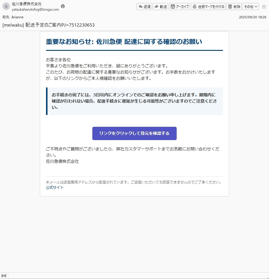 From: 佐川急便株式会社 <yatsukaharutofog@kroga.com>
